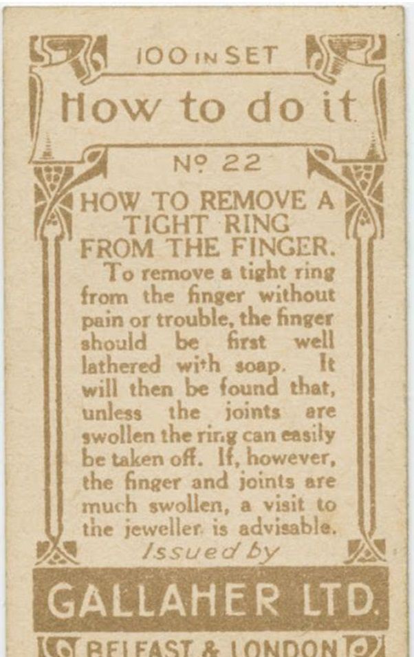 People don't often look back on the early 1900's for advice, but what if we could actually learn something from the Lost Generation? 通常人们不会为了求取生活妙方而去回顾20世纪初的年代,不过如果那个“垮掉的一代”真的能对我们有所助益呢? The New York Public Library has digitized 100 "how to do it" cards found in cigarette boxes over 100 years ago, and the tips they give are so practical that millennials reading this might want to take notes. 纽约公共图书馆将一组100多年前的香烟盒上的“生活妙招”卡片进行了数字化处理,这些卡片上的小贴士实在太实用了,二十一世纪的我们看到了也会多加留意!