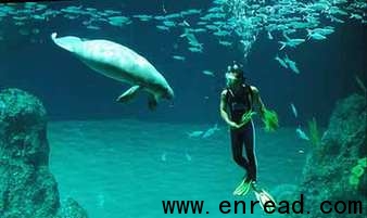 我想我大概永远也搞不清在那个早晨到底发生了什么。我情愿相信是那些海牛和我一起参加了一个新生命的庆祝仪式,而我则是它们邀请的客人。随着时间的流逝,这也成了我珍藏的记忆。 在那次意外的邂逅中,我感受到在这个巨大的星球上,生命之间的一种极致的和谐。这份记忆慢慢变成了忧伤时唱给自己的一首歌,快乐时跳起的一段舞蹈。 ![]() Walking alone on a remote beach in southwest Florida, I was startled to hear splashes and a deep sigh coming from the water just offshore. As I squinted in the direction of the sounds, the rounded gray back of a sea creature rose amid a red froth, rolled turbulently at the surface, then sank back into the Gulf. Moments later a broad nose emerged and exhaled in a great snuffling breath. It was a manatee, and by the looks of the reddish-colored water and the way it was thrashing, it was in trouble. I had often watched manatees in these warm coastal waters, but I'd never seen one act like this before. Usually just their big nostrils appeared for a gulp of air as they foraged on sea grasses or swam slowly to greener underwater pastures. But I also knew how common it was for these lumbering giants to be gashed by boat propellers or entangled in crab traps. I wanted to help, but what could I do? There was no one else on the beach, and the nearest phone to call the Marine Patrol was miles away. Tossing my beach bag onto the sand, I began wading toward the animal, who continued to writhe as if in distress. I was still only waist deep when I came close enough to make out the bristly whiskers on the manatee's muzzle as it thrust up out of the sea. Then, to my surprise, a second muzzle, much smaller, poked up beside it. I pushed on through the shoal water, but now the manatees were also moving toward me. Before I knew what was happening, I was in chest-deep water encircled by not one or two, but at least three blimplike bodies. I felt elated and slightly dizzy like the kid who is 'it' in a schoolyard game. A bulbous snout emerged next to me. In the translucent water, I could clearly see the rest of the huge mammal, and there, nestled close behind her, a smaller version of her massive body. Then, with incredible gentleness for such an enormous creature, the larger manatee nudged the little one with her paddle-shaped flipper and pushed it to the surface beside me. I wanted to reach out and touch the pudgy sea baby, but I hesitated, not knowing the rules of this inter-species encounter. As the two slipped back underwater, two other manatees moved in from behind and slid by, one on either side, rubbing gently against my body as they swam past. They circled and repeated the action, this time followed by the mother and her calf. Emboldened by their overtures, I let my hand graze the side of the small manatee, now clinging to the mother's back, as they made their pass. Its skin felt rubbery and firm like an old fashioned hot water bottle. The group completed several more circuits. Since they obviously enjoyed touching me, I began stroking each of them as they sidled by. When one of them rolled over for a scratch, I knew I had made the right move. Eventually my new friends made their way off towards deeper water. I stood anchored to the spot, not wishing to break the spell, until finally the rising tide forced me back to shore. I suppose I will never know exactly what took place that morning. I like to think that the manatees included me in their celebration of a birth; that I was welcomed to meet the newest member of their tribe. But over time I have come to cherish the experience without questions. During that unexpected rendezvous, I felt more in tune with the rhythms of life on this vast planet than I ever have. The memory has become a song I sing to myself when I have the blues, a dance I do to celebrate joy. And each year, during the last week of May, I pack a lunch and head for that isolated stretch of beach for a quiet little birthday picnic on the shore. After all, you never know who might show up for the party. |